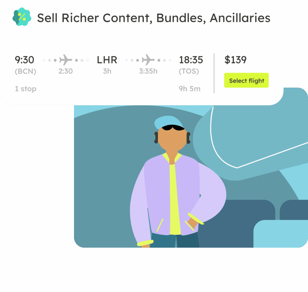 Offer rich ancillaries and fare bundles that GDSs can’t, across the whole journey.
